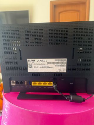 Modem TIM Hub+ in nero. - Design moderno e compatto. - Indicatore LED per stato. - Logo TIM sul fronte.