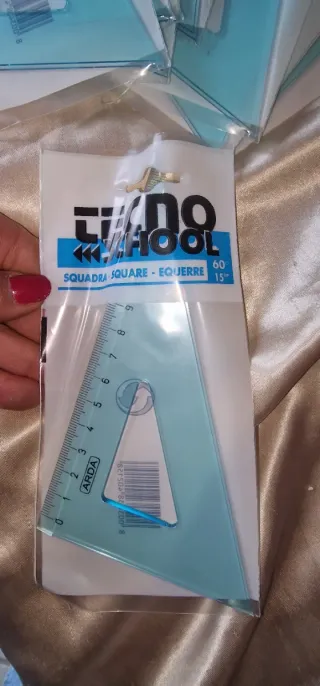 Numero 12 mini squadre Tecno School da 45° e num 9 da 69°, ideali per la scuola e il disegno tecnico. - Colore: Azzurro trasparente - Materiale: Plastica resistente - Misure: 15 cm (6 pollici) - Angoli: 45° e 70°
