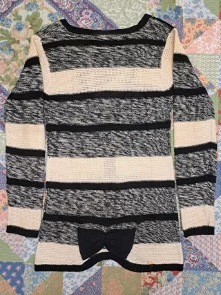 Cardigan lungo Combo a righe con chiusura a bottone. Taglia XS. - Design a righe orizzontali. - Scollo a V. - Maniche lunghe. - Fiocco sul retro. - Bottone di riserva.