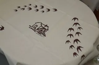 Tovaglia rettangolare 140x124 con 4 tovaglioli coordinati 35x35 originale Mulino Bianco, risalente alla celebre collezione promozionale del 1985 per collezionisti. Il set presenta l'iconica grafica stilizzata del mulino e lo stormo di rondini in marrone scuro su fondo panna, 100 % cotone di buona qualità made in Italy. Nuova mai usata eccellente stato di conservazione, senza macchie o aloni.