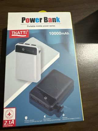 Power bank portatile THaTTi da 10000mAh con ricarica rapida 2.1A. - Design compatto e leggero. - Indicatore di carica digitale. - Due porte USB per la ricarica simultanea. - Tecnologia di assorbimento e prolungamento della durata della batteria.