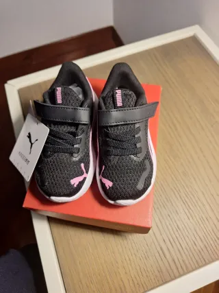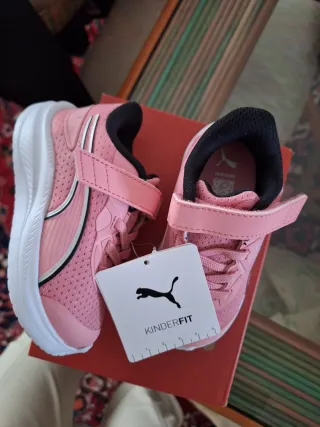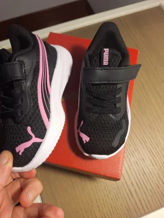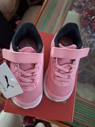 Taglia 22. Nuove con scatola e cartellino. Rivendo per misura errata Scarpe Puma per bambina in colore rosa. Chiusura con velcro e lacci. - Tomaia in mesh traspirante. - Logo Puma sul lato e sulla linguetta. - Suola bianca in gomma.