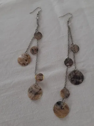 Elegante set composto da collana e orecchini. - Realizzati con elementi in madreperla. - Design a cascata con pendenti. - Chiusura a moschettone per la collana.