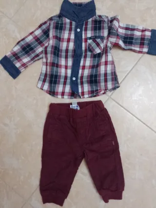 Bellissimo completo per bambino composto da camicia a quadri e pantaloni. - Camicia a maniche lunghe con colletto e taschino. - Pantaloni in tinta unita con elastico in vita.6 mesi 68 cm, camicia Brums, pantaloni chicco