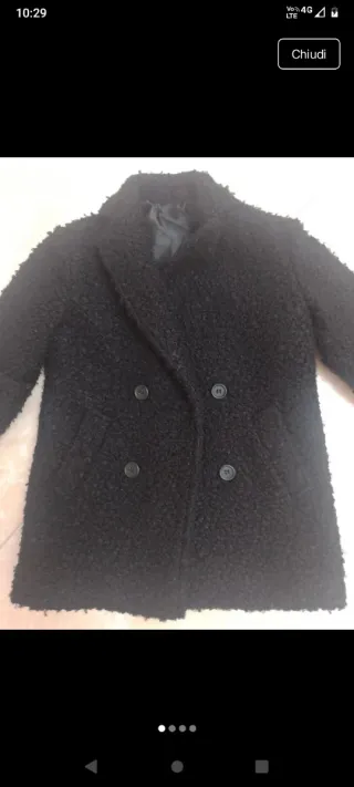 Cappottino in tessuto morbido, ideale per le bambine. Presenta un design doppiopetto con bottoni. - Tessuto effetto peluche. - Chiusura con bottoni. - Collo a rever.sull etichetta c'è scritto 2 anni,non ci SN i cm