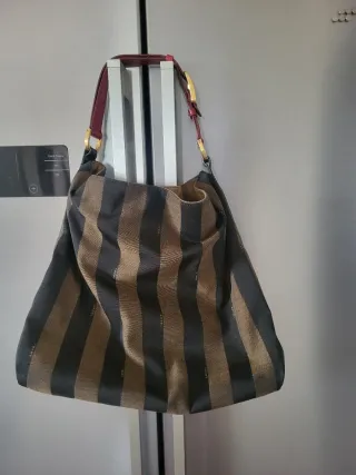 Borsa Fendi in tela con motivo a righe. - Colore: marrone e nero. - Materiale: tela.