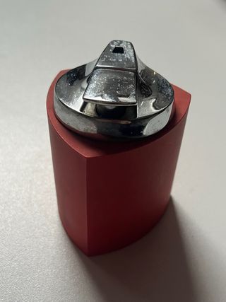 Accendino Ronson dal design vintage, un pezzo da collezione per gli amanti del modernariato. - Finitura cromata lucida. - Base in materiale rosso opaco.