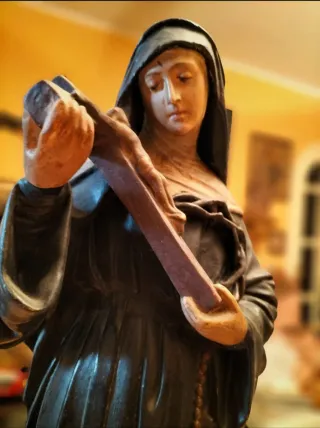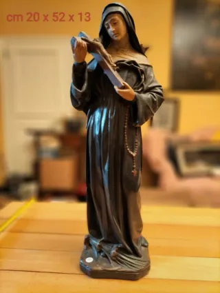 Statua di Santa Rita con croce e rosario. cm 20 x 52 x 13