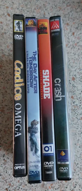 Set di 4 DVD con film d'azione e avventura. - Crash - Shade - The Day After Tomorrow - Codice Omega