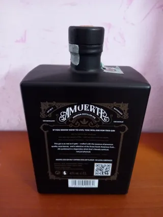 Bottiglia vuota di Amuerte Coca Gin, un pezzo da collezione per gli amanti del design unico. - Design distintivo con teschio. - Colore nero opaco. - Ideale per collezionisti o come elemento decorativo. Bottiglia da 1 Lt