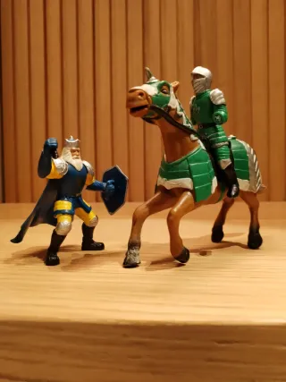Set di soldatini medievali Simba Toys. - Include un cavaliere a cavallo e un guerriero. - Dettagli colorati e design classico.