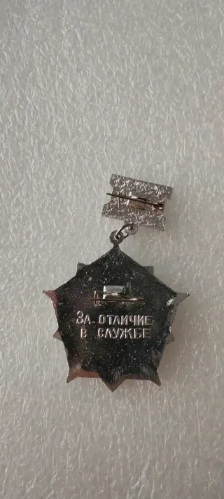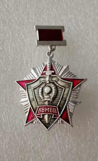 Il distintivo è noto come "Per servizio distinto nelle truppe interne del Ministero degli Affari Interni dell'URSS" (Нагрудный знак «За отличие в службе» ВВ МВД СССР). È stato assegnato dal 1970 al 1991. Il testo sul retro recita "ЗА ОТЛИЧИЕ В СЛУЖБЕ" (Per servizio distinto). Il distintivo è stato utilizzato per sottolineare l'appartenenza a una comunità o organizzazione e come ricompensa per successi speciali.