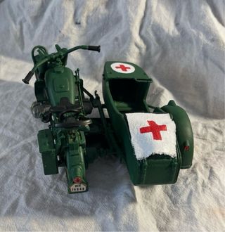 Modellino di una moto BMW R75 con sidecar, in colorazione verde militare. - Simbolo della croce rossa sul sidecar e sul sedile. - Targa WH-74544 sul parafango anteriore Dipinto a mano ATTENZIONE: le foto fanno parte la descrizione  zero contesti politici  non è un giocattolo e per bellezza collezionismo