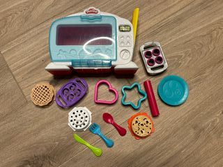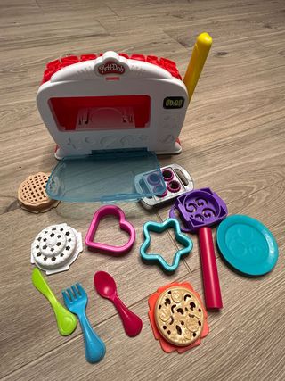 Set Play-Doh Magico Forno Hasbro. - Include accessori per creare. - Forno con maniglia gialla. - Vassoio trasparente estraibile. - Stampini a forma di cuore, stella e torta. - Posate: coltello, forchetta e cucchiaio. - Piatto e stampo per pizza. - Stampo rotondo con decorazioni.
