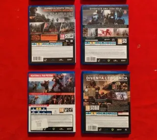 Vendo N.4 giochi per PS4 composti da: - The Division - Titanfall 2 - Destiny - Anthem I giochi sono tutti perfettamente funzionanti. Le custodie sono ben tenute tranne 2 dove presentano dei difetti (vedere le due ultime foto) mentre i dischi sono in ottimo stato non presentano graffi (specchio). Vedere bene tutte le foto. SPEDIZIONE ACCURATA IL PRODOTTO VIENE SPEDITO ENTRO LE 24H LAVORATIVE