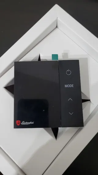 Termostato smart Lamborghini con connettività Wi-Fi. - Design moderno e minimalista. - Interfaccia touch intuitiva. - Funzione Mode per diverse impostazioni. - Pulsanti di navigazione su/giù.