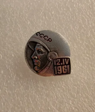 Spilla commemorativa con profilo di cosmonauta e data. - CCCP inciso sul casco. - 12.IV 1961 sul lato.
