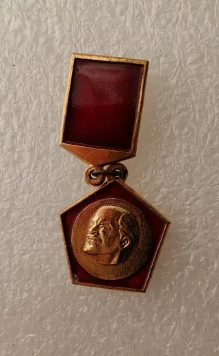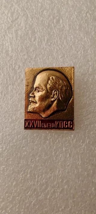 Spilla commemorativa del XXVII Congresso del PCUS (Partito Comunista dell'Unione Sovietica). - Raffigura il profilo di Lenin. - Dettagli in rilievo.