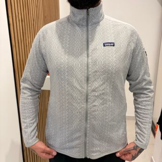 Pile Patagonia da uomo con una fantasia geometrica tono su tono. - Zip frontale. - Collo alto. - Logo Patagonia sul petto.