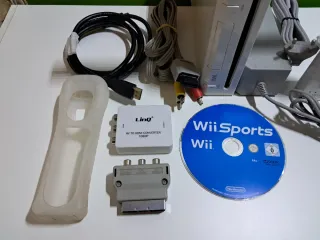 Console Nintendo Wii, completa di tutti i suoi accessori originali come da foto, il tutto mantenuto in ottime condizioni e perfettamente funzionante in ogni sua parte, riceverete esattamente tutto quello che vedete nelle immagini!! Tra cui: Console Wii Alimentatore Cavo Rca Audio Video Barra Sensore Cavo hdmi Convertitore AV Rca hdmi Adattatore scart Joystick Pad Controller Wireless Cover silicone Pad Nunchuk Wii Sports