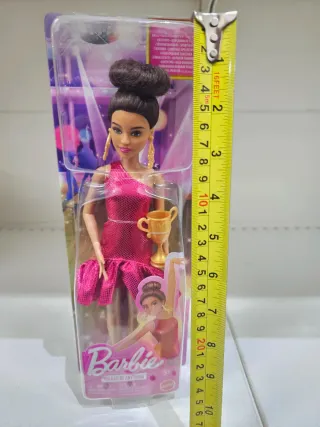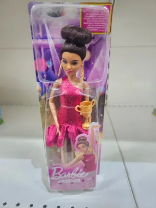 Bambola Barbie You Can Be Anything con abito rosa e trofeo. - Abito rosa con dettagli a balze. - Accessorio trofeo dorato. - Capelli raccolti in uno chignon alto.