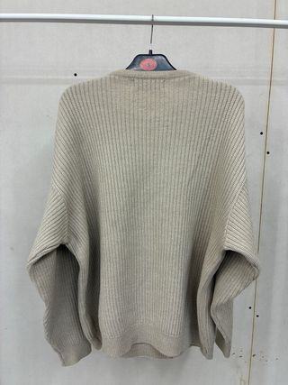 Maglione girocollo a costine in color beige. - Logo applicato sul davanti. - Vestibilità comoda.