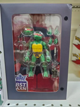 Action figure di Raphael della linea BST AXN. - Include testa intercambiabile. - Accessori come sai e mani intercambiabili.