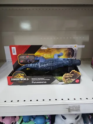 Action figure di dinosauro Purussaurus della linea Jurassic World. - Dinosauro Gigantic Thrashers. - Dettagli realistici e colorazione blu. - Prodotto Mattel.