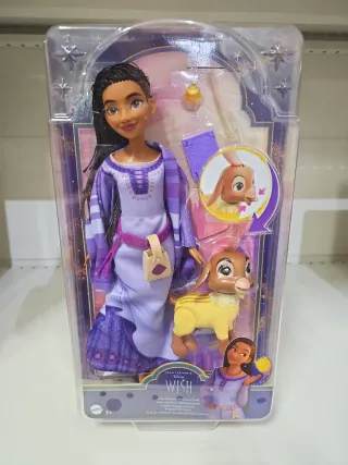 Set di bambola Asha e Valentino dal film Disney Wish. Include accessori. - Bambola di Asha con abito viola. - Valentino, il simpatico capretto. - Accessori inclusi.