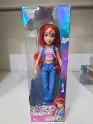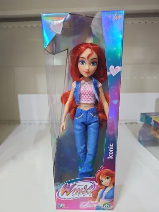 Bambola di Bloom della serie Winx Club, linea Iconica. La bambola indossa un outfit alla moda. - Capelli rossi lunghi. - Outfit composto da top, gilet e jeans. - Dettagli curati.
