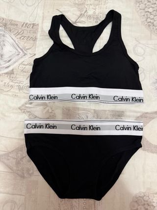 Set intimo Calvin Klein da donna, composto da top e slip. - Top sportivo con spalline incrociate. - Slip con elastico in vita logato. - Tessuto morbido e confortevole.