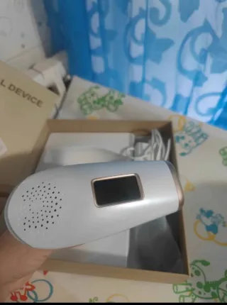 Depilatore a luce pulsata per la rimozione dei peli. - Design elegante bianco e oro. - Display digitale integrato.