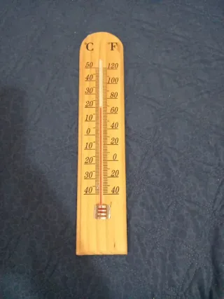 Termometro in legno per misurare la temperatura. - Scala in Celsius (°C) e Fahrenheit (°F). - Indicatore rosso del livello di mercurio.