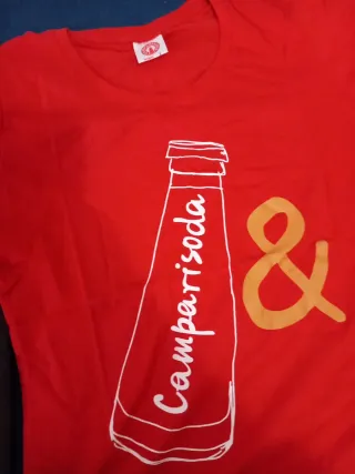 Maglietta da donna a mezza manica con una simpatica stampa. - Stampa Camparisoda & sul davanti. - Girocollo.