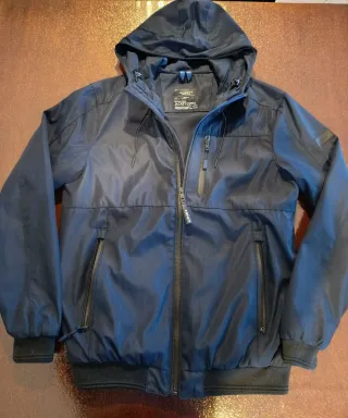 Giubbotto Alcott uomo taglia M, con zip e cappuccio, colore blu, impermeabile, cotone e poliestere, vestibilità normale, in ottime condizioni