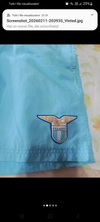 Costume da bagno per bambino con logo SS Lazio. - Colore azzurro. - Fasce bianche e blu con logo ripetuto. - Stemma SS Lazio sul lato destro.