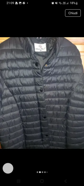 Elegante piumino da donna, perfetto per le giornate più fredde. Il design trapuntato lo rende un capo alla moda e confortevole. - Chiusura frontale con bottoni. - Collo alto per una maggiore protezione. - Tasche laterali pratiche.