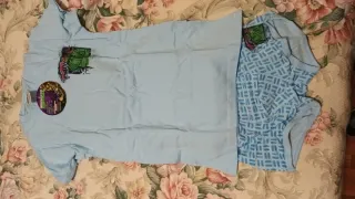 Set composto da maglietta e slip a tema Tartarughe Ninja. - Taglia 9-10 anni. - Fantasia a quadretti blu con logo. - Maglietta azzurra con stampa. - Nuovi con cartellino.