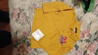 Polo a maniche lunghe per neonato, taglia 12 mesi. Il capo è nuovo. - Colore giallo ocra. - Collo a polo con bottoncini. - Stampa 21 Super League sul petto.