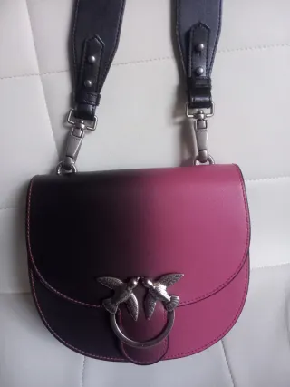 Iconica borsa Pinko Love Bag, realizzata in vera pelle con un affascinante effetto sfumato dal nero al rosa. Nuova - Dettaglio con iconico logo a forma di uccellini. - Tracolla regolabile in pelle. - Chiusura con fibbia metallica.