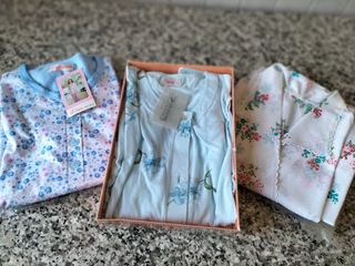 Set di camicie da notte e pigiami per signora, con un delicato motivo floreale. Fantasia floreale con fiori blu e rosa. Tessuto leggero e confortevole. Dettagli in pizzo.