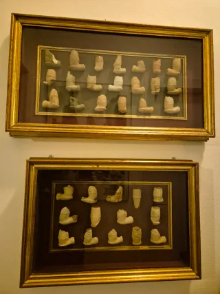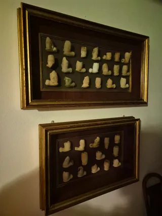 Antiche chioggiotte inserite in cornici da esposizione. - Cornice dorata. - Esposizione a muro. Una cornice misura 50x35 e un altra misura 60x35