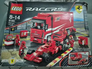 Set LEGO Racers 8185 Ferrari Truck. Include minifigure. - Camioncino Ferrari. - Auto da corsa Ferrari. - Accessori per il pit stop.