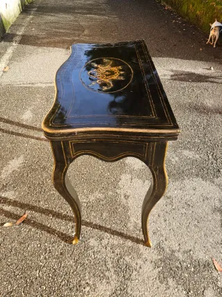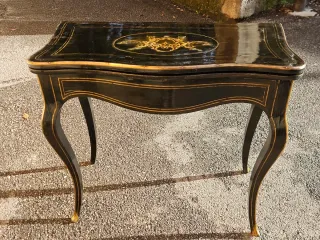 Elegante tavolino antico con finiture in ottone. - Design Boulle con intarsi. - Superficie decorata con motivo centrale. - Gambe curve con dettagli dorati. Napoleone III Francia 1850/70 completamente restaurato lucidato a gommalacca a mano a tampone pronto da essere messo in casa, solo il panno verde è usato l'oggetto si trova a Merate in via spiga n1 contattatemi sulmiotelwhatsup 329 1670765 grazie cordiali saluti