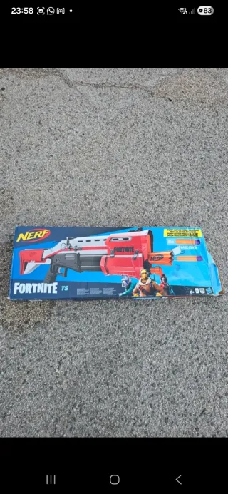 Fucile Nerf ispirato al videogioco Fortnite. 4 colpi all'interno Nuovo. - Modello TS. - Design rosso e grigio. - Include 8 dardi Mega.