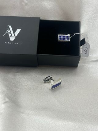 Eleganti gemelli da polso Alta Vita. - Design rettangolare con inserti blu. - Finitura in argento.
