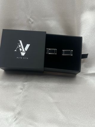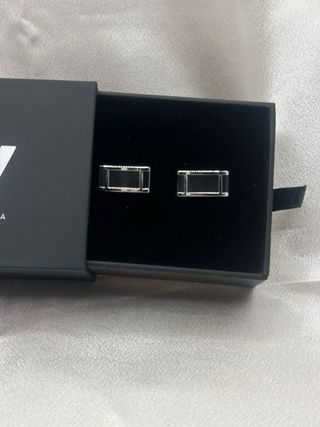 Eleganti gemelli da polso con un design moderno. - Dettagli in argento. - Inserti neri.