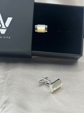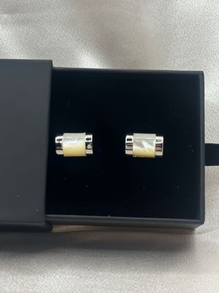 Eleganti gemelli da polso La Vita. - Design moderno con inserto in madreperla. - Finitura in argento lucido.