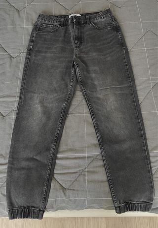 Pantaloni in denim grigio di Bershka. - Vita elasticizzata. - Tasche anteriori. - Fondo gamba elasticizzato.