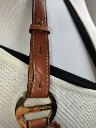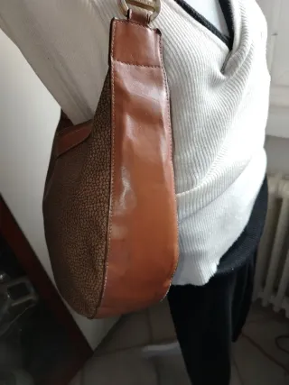 Borsa a spalla in pelle e tessuto con il classico design Borbonese. Usata ma non presenta usure Conservata - Materiale: Pelle e tessuto. - Colore: Beige e marrone.